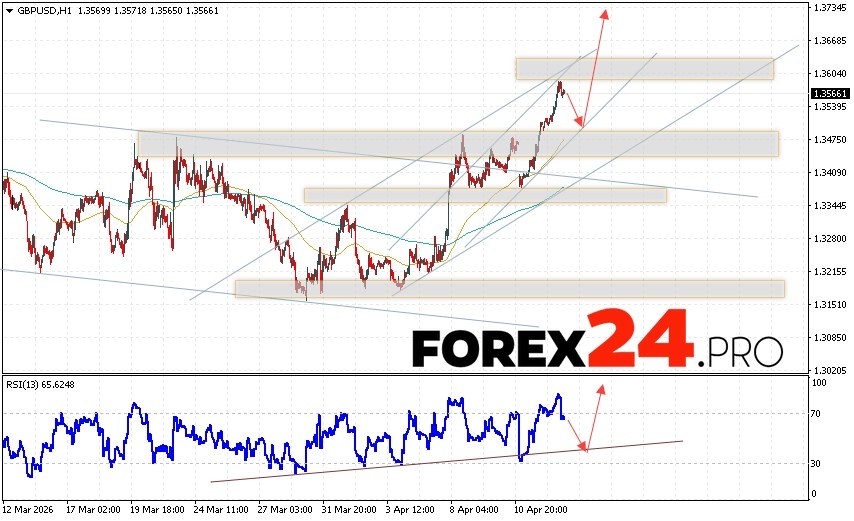 GBP/USD Forecast and Analysis for April 16, 2026 suggests an attempt to develop a bearish correction and test the support area near 1.3485. Then, continued growth with a target near 1.3735. An additional signal favoring a rise in the British Pound will be a test of the support line on the relative strength indicator (RSI). A decline in the British Pound against the US Dollar and a breakout of 1.3425 would invalidate this upward trend. This would indicate a continued decline in the Forex pair with a potential target below 1.3215.