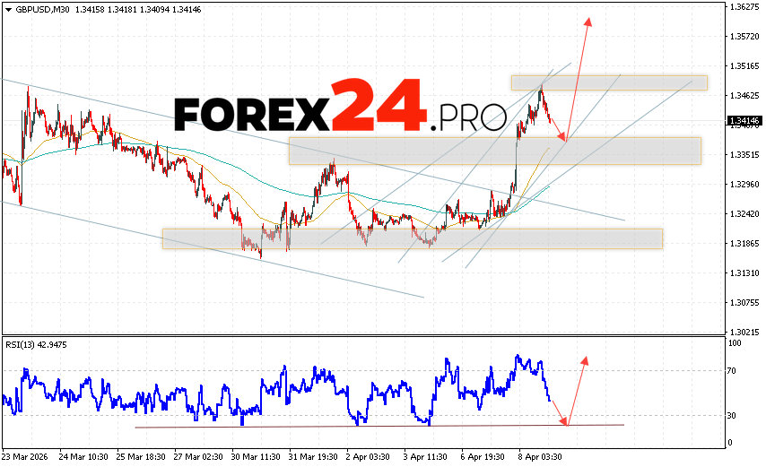 GBP/USD Forecast and Analysis for April 9, 2026 suggests an attempt at a bearish correction and a test of the support area near 1.3395. Subsequently, quotes will continue to rise with a target near 1.3605. An additional signal favoring a rise in the British Pound will be a test of the support line on the relative strength indicator (RSI). A decline in the British Pound against the US Dollar and a break of 1.3305 will cancel out the upside scenario. This will indicate a continued decline in the Forex pair with a potential target below 1.3165.