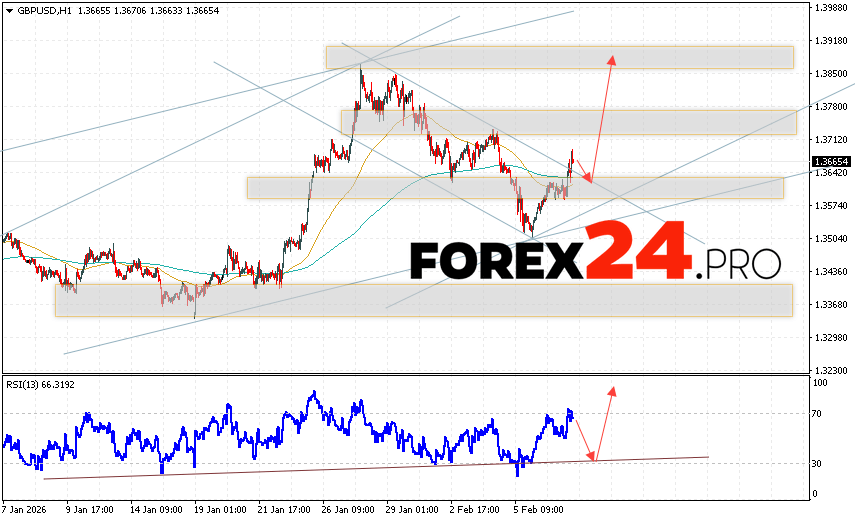 GBP/USD Forecast and Analysis for February 10, 2026 suggests an attempt to develop a bearish correction and test the support area near 1.3625. Then, continued growth with a target near 1.3875. An additional signal in favor of an uptrend for the British Pound will be a test of the support line on the relative strength indicator (RSI). A decline in the British Pound against the US Dollar and a breakout of 1.3475 would cancel this uptrend. This would indicate a continued decline in the Forex pair with a potential target below 1.3365.