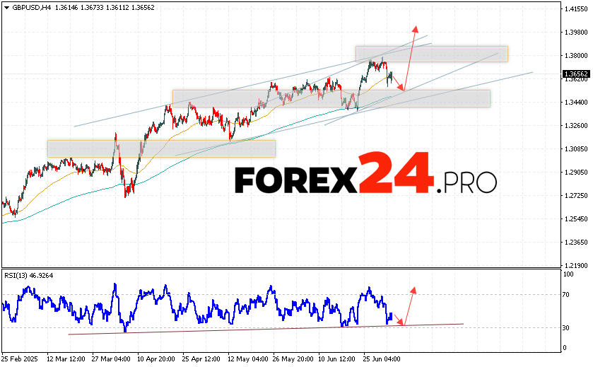 GBP/USD Forecast and Analysis for July 4, 2025 suggests an attempt to develop a fall and a test of the support area near the level of 1.3495. Then, a continuation of the fall in quotes with a target near the level of 1.3995. An additional signal in favor of the decline of the British Pound will be a test of the resistance line on the relative strength indicator (RSI). The cancellation of the fall option will be a strong growth of the British Pound against the US Dollar and a breakout of the 1.3405 area. This will indicate a continuation of the rise in the Forex pair with a potential target above the level of 1.3235.