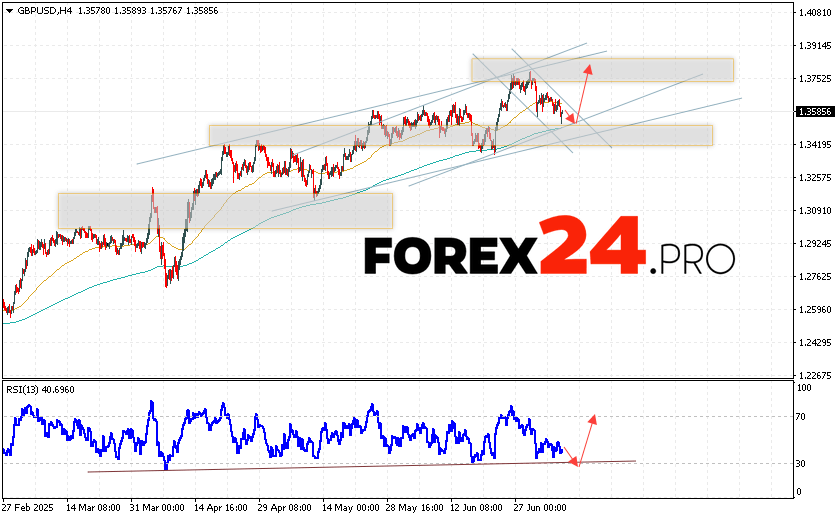 GBP/USD Forecast and Analysis for July 9, 2025suggests an attempt to develop a decline and test the support area near the 1.3545 level. Then, the quotes will continue to grow with a target near the 1.3765 level. An additional signal in favor of the British pound’s rise will be a test of the support line on the relative strength index (RSI). A decline in the British pound against the US dollar and a breakout of the 1.3405 area will cancel the growth scenario. This will indicate a continuation of the decline in the Forex pair with a potential target below the 1.3235 level.