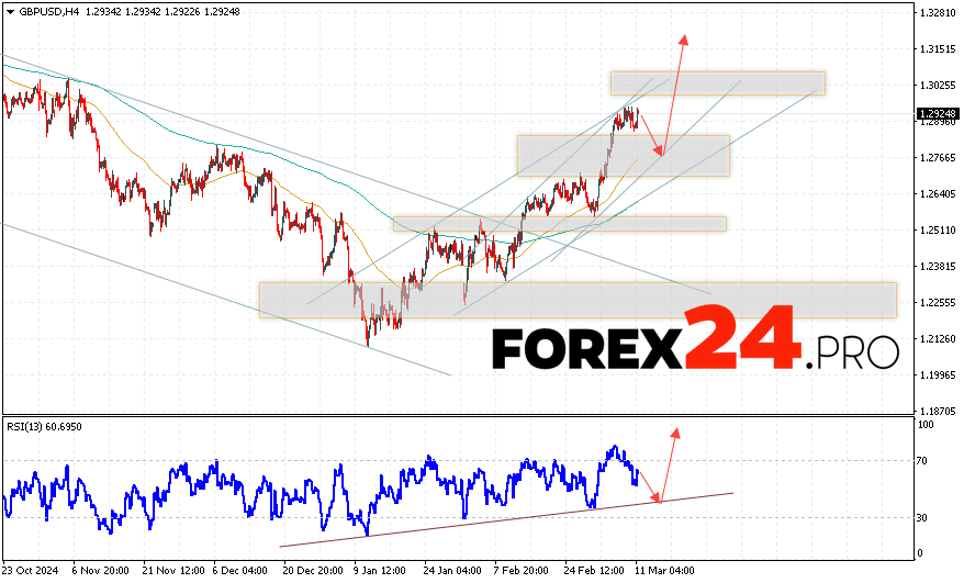 GBP/USD Forecast and Analysis for March 12, 2025 suggests an attempt to develop a fall and test the support area near the level of 1.2785. Then, continued growth with a target near the level of 1.3155. An additional signal in favor of the rise of the British Pound will be a test of the support line on the relative strength indicator (RSI). The cancellation of the growth option will be the fall of the British Pound against the US Dollar and a breakout of the 1.2625 area. This will indicate a continuation of the decline on the Forex pair with a potential target below the level of 1.2435.