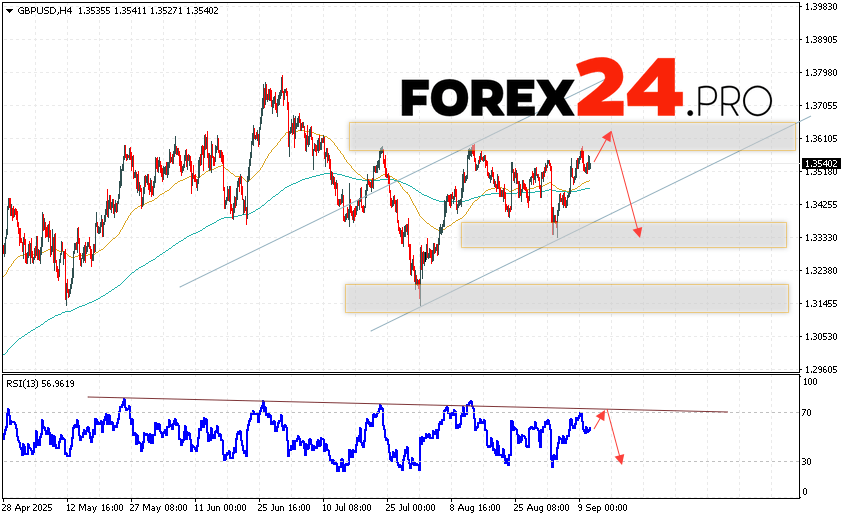 GBP/USD Forecast and Analysis for September 12, 2025 suggests an attempt to develop an increase and test the resistance area near the level of 1.3595. Then, the continuation of the fall in quotes with a target near the level of 1.3335. An additional signal in favor of the decline of the British Pound will be a test of the resistance line on the relative strength indicator (RSI). The cancellation of the fall option will be a strong growth of the British Pound against the US Dollar and a breakout of the 1.3725 area. This will indicate a continuation of the rise on the Forex pair with a potential target above the level of 1.3905.