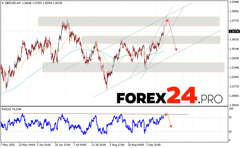 GBP/USD Forecast and Analysis for September 18, 2025 suggests an attempt to continue the rally and test the resistance area near 1.3775. This will be followed by a continued decline with a target near 1.3515. An additional signal favoring a decline in the British Pound will be a test of the resistance line on the relative strength indicator (RSI). A strong rise in the British Pound against the US Dollar and a breakout of 1.3845 will cancel out the downward trend. This will indicate a continued rally in the Forex pair with a potential target above 1.3995.