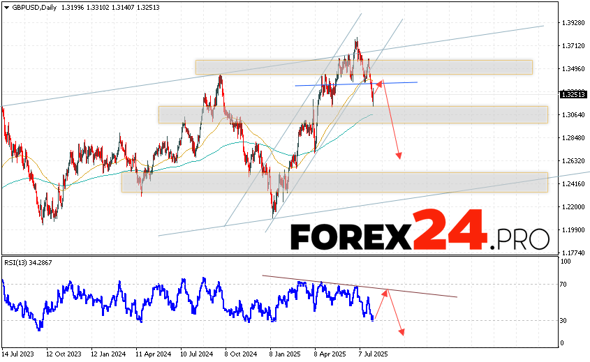 GBP/USD Weekly Forecast August 4 — 8, 2025 suggests an attempt at a bullish correction and a test of the resistance level near the 1.3435 area. From there, we can expect the currency pair to continue falling with a target below the 1.2635 area. An additional signal in favor of a decline will be a test of the trend line on the relative strength indicator. A strong rise and a breakout of the 1.3905 level will cancel the scenario of a decline in the pound-dollar pair. In this case, we can expect the pair to continue to rise with a potential target above the 1.4275 level.