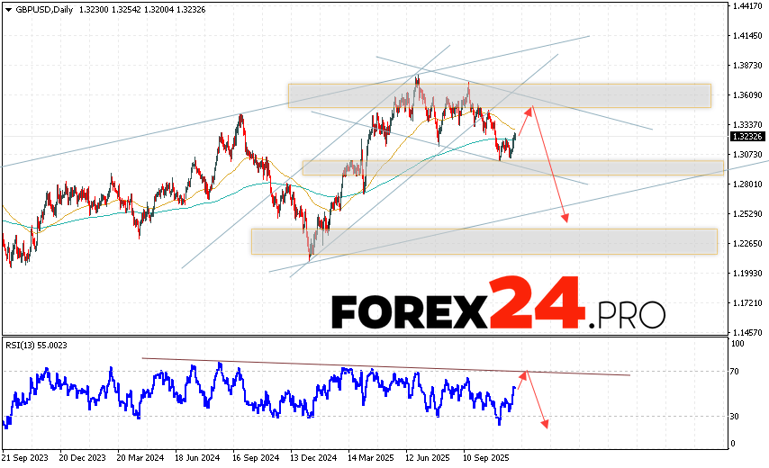 GBP/USD Weekly Forecast December 1 – 5, 2025 suggests an attempt to develop a bullish correction and test the resistance level near 1.3385. From this point, we should expect continued decline in the currency pair with a target below 1.2515. A test of the trend line on the relative strength indicator would serve as an additional signal for a decline. A strong rally and a breakout of the 1.3675 area would cancel the GBP/USD downside scenario. In this case, we should expect the pair to continue rising, with a potential target above 1.4185.