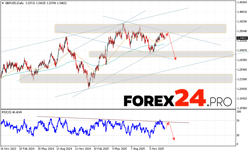 An additional signal for the British Pound to decline will be a test of the resistance line on the relative strength indicator. A second signal will be a rebound from the upper boundary of the descending channel. A strong rally and a breakout of the 1.3785 area would cancel out the GBP/USD decline this week (January 19-23, 2026). This would indicate a breakout of the resistance area and continued growth above 1.4235. A breakout of the support area and a price close below 1.3205 would confirm the GBP/USD decline, indicating a breakout of the lower boundary of the bullish channel.