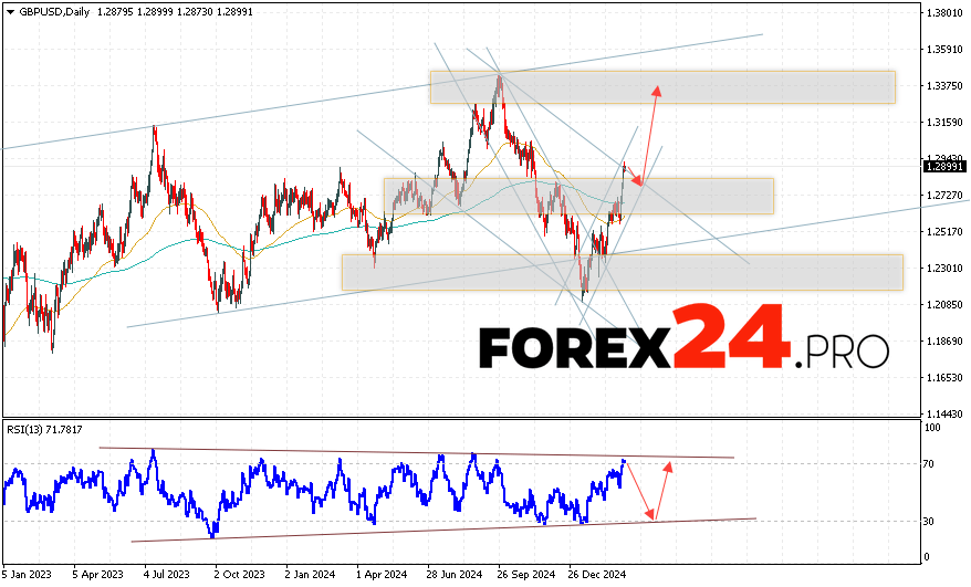 GBP/USD Weekly Forecast March 10 — 14, 2025 suggests an attempt to develop a bearish correction and test the support level near the 1.2375 area. From where we should expect continued growth of the currency pair with a target above the 1.3195 area. An additional signal in favor of the rise will be a test of the trend line on the relative strength indicator. The cancellation of the growth option of the Pound Dollar pair will be a fall and a breakout of the 1.2675 level. In this case, we should expect a continuation of the decline of the pair with a potential target below the 1.2385 level.