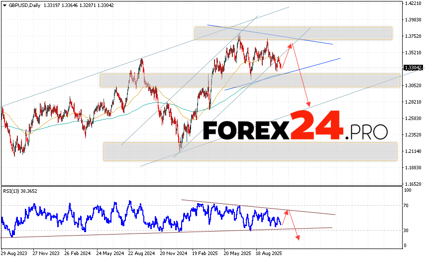 GBP/USD Weekly Forecast October 27 – 31, 2025 suggests an attempt to develop a bullish correction and test the resistance level near 1.3545. From this point, we should expect continued decline in the currency pair with a target below 1.2805. A test of the trend line on the relative strength indicator would serve as an additional signal of decline. A strong rally and a breakout of 1.3865 would cancel the downward trend for the GBP/USD pair. In this case, we should expect continued upward movement with a potential target above 1.4175.