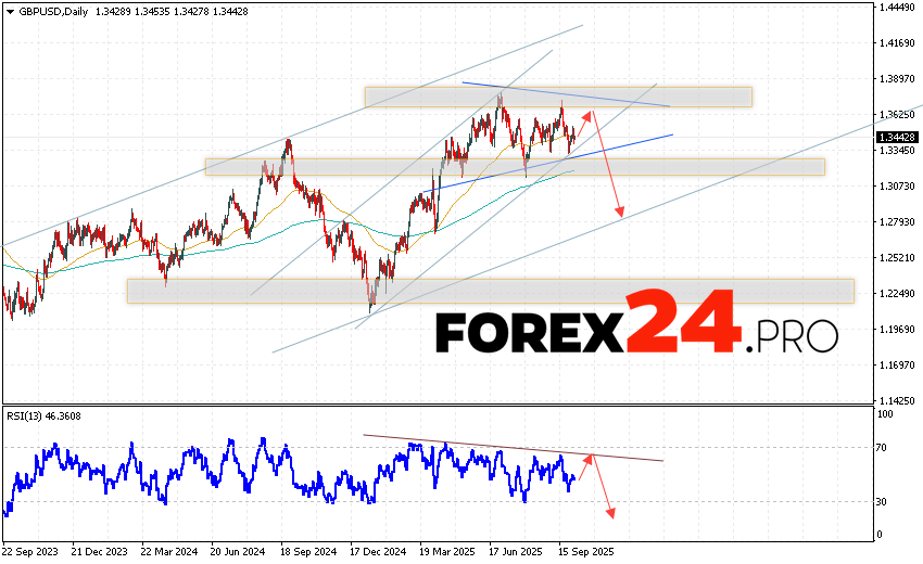 GBP/USD Weekly Forecast October 6 — 10, 2025 suggests an attempt to develop a bullish correction and test the resistance level near 1.3625. From there, we should expect continued decline in the currency pair with a target below 1.2805. A test of the trend line on the relative strength indicator (RSI) will serve as an additional signal for a decline. A strong rally and a breakout of 1.3865 would cancel out the downside scenario for the GBP/USD pair. In this case, we should expect continued upward movement with a potential target above 1.4175.