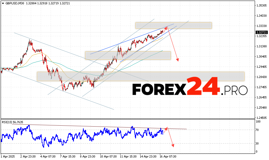GBP/USD Forecast and Analysis for April 17, 2025 suggests an attempt to develop growth and test the resistance area near the level of 1.3305. Then, continued decline with a target near the level of 1.3045. An additional signal in favor of the decline of the British Pound will be a test of the resistance line on the relative strength indicator (RSI). The cancellation of the fall option will be a strong growth of the British Pound against the US Dollar and a breakout of the 1.3365 area. This will indicate continued growth on the Forex pair with a potential target above the level of 1.3505.