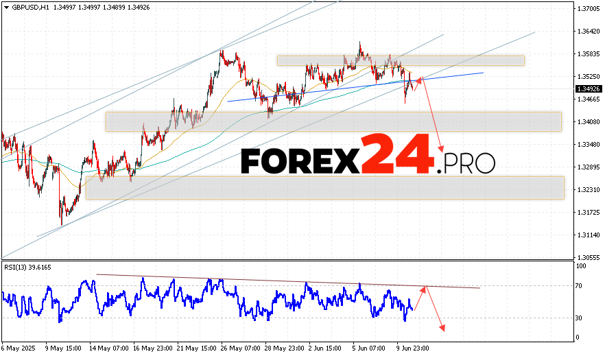 GBP/USD Forecast and Analysis for June 11, 2025 suggests an attempt to develop growth and test the resistance area near the level of 1.3525. Then, the continuation of the quotes decline with the target near the level of 1.3305. An additional signal in favor of the British Pound decline will be a test of the resistance line on the relative strength indicator (RSI). A strong growth of the British Pound against the U.S. Dollar and a breakdown of the 1.3655 area will cancel the downside option. This will indicate the continuation of the pair’s rise on Forex with a potential target above the level of 1.3875.