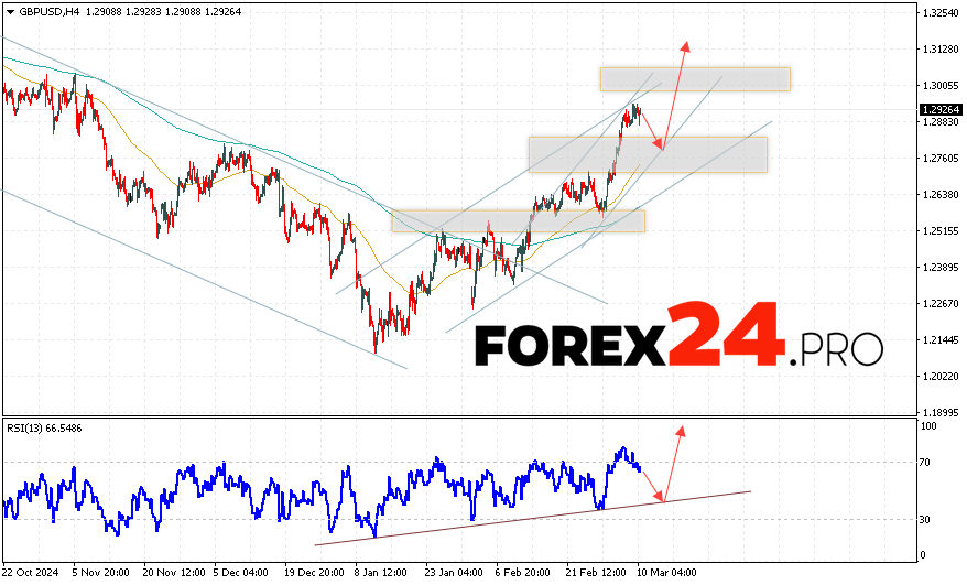 GBP/USD Forecast and Analysis for March 11, 2025 suggests an attempt to develop a fall and test the support area near the level of 1.2770. Then, continued growth with a target near the level of 1.3135. An additional signal in favor of the rise of the British Pound will be a test of the support line on the relative strength indicator (RSI). The cancellation of the growth option will be the fall of the British Pound against the US Dollar and a breakout of the 1.2625 area. This will indicate a continuation of the decline on the Forex pair with a potential target below the level of 1.2445.