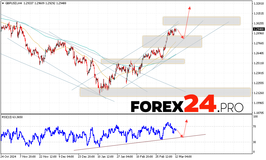 GBP/USD Forecast and Analysis for March 13, 2025 suggests an attempt to develop a fall and test the support area near 1.2825. Then, continued growth with a target near 1.3175. An additional signal in favor of the rise of the British Pound will be a test of the support line on the relative strength indicator (RSI). The growth scenario will be cancelled if the British Pound against the US Dollar falls and breaks through the area of 1.2635. This will indicate a continuation of the decline on the Forex pair with a potential target below the level of 1.2465.