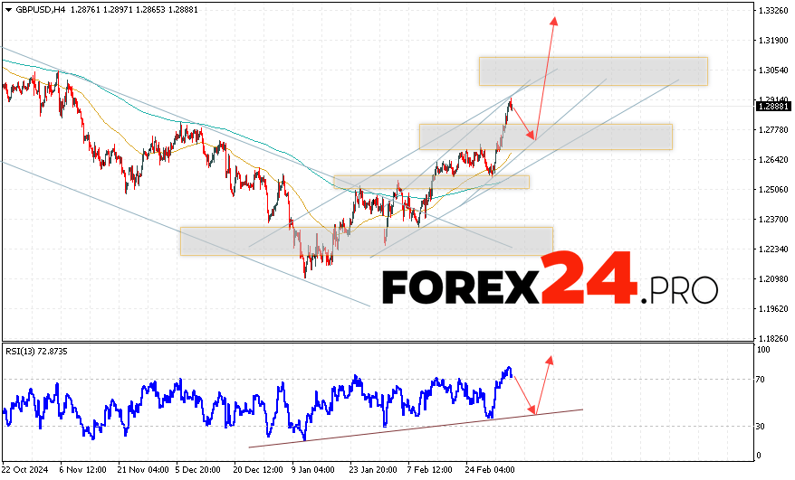 GBP/USD Forecast and Analysis for March 7, 2025 suggests an attempt to develop a fall and test the support area near the level of 1.2765. Then, continuation of growth with a target near the level of 1.3225. An additional signal in favor of the rise of the British Pound will be a test of the support line on the relative strength indicator (RSI). The cancellation of the growth option will be the fall of the British Pound against the US Dollar and a breakout of the area of 1.2625. This will indicate a continuation of the decline on the Forex pair with a potential target below the level of 1.2435.