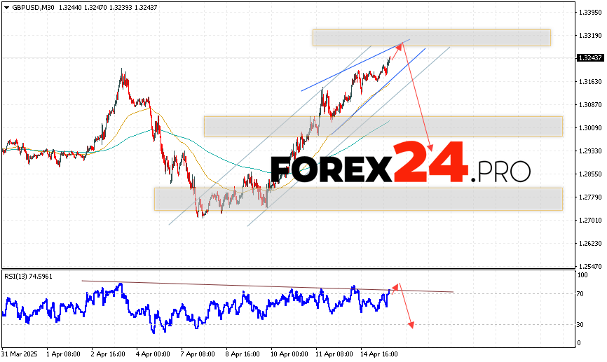 GBP/USD Forecast for April 16, 2025 suggests an attempt to develop growth and test the resistance area near the level of 1.3205. Then, continuation of the fall with a target near the level of 1.2885. An additional signal in favor of the decline of the British Pound will be a test of the resistance line on the relative strength indicator (RSI). The cancellation of the fall option will be a strong growth of the British Pound against the US Dollar and a breakout of the 1.3305 area. This will indicate continued growth on the Forex pair with a potential target above the level of 1.3465.
