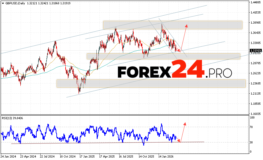 GBPUSD Weekly Forecast April 6 – 10, 2026 suggests an attempt to develop a bearish correction and test the support level near 1.3125. From this point, we should expect continued growth for the pair with a target above 1.3695. A test of the trend line on the relative strength indicator (RSI) will be an additional signal in favor of an upside move. A decline and a breakout of 1.2935 would cancel the upward trend for the GBP/USD pair. In this case, we should expect continued declines with a potential target below 1.2585.