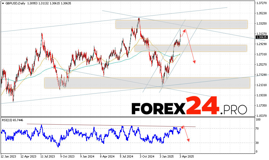 GBP/USD Weekly Forecast April 7 — 11, 2025 suggests an attempt to develop a bullish correction and test the resistance level near the 1.3145 area. From where we should expect a continuation of the fall of the currency pair with a target below the 1.2525 area. An additional signal in favor of a decline will be a test of the trend line on the relative strength indicator. The cancellation of the fall option for the Pound Dollar pair will be strong growth and a breakout of the 1.3345 level. In this case, we should expect a continuation of the rise of the pair with a potential target above the 1.3705 level.