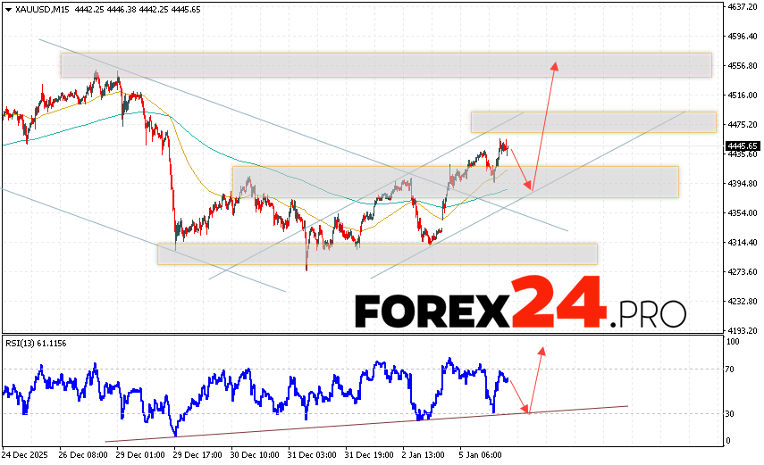 GOLD Forecast and XAU/USD Analysis for January 6, 2026 suggests an attempt to develop a bearish price correction and a test of the support area near 4380. Subsequently, continued growth in base metal prices with a target above 4555. A decline in the asset’s market value and a breakout of 4345 would cancel the upward price scenario for gold. This would indicate a continued decline in the gold price with a potential target below 4165.