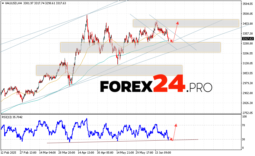 GOLD Forecast and XAU/USD Analysis for June 25, 2025 suggests an attempt to develop a bearish price correction and test the support area near the 3295 level. Further, the growth of non-ferrous metal quotes will continue with a target above the 3435 level. A fall in the asset’s value on the markets and a breakout of the 3265 level will cancel the option of growth in gold prices. This will indicate a continuation of the decline in the price of gold with a potential target below the 3205 mark.