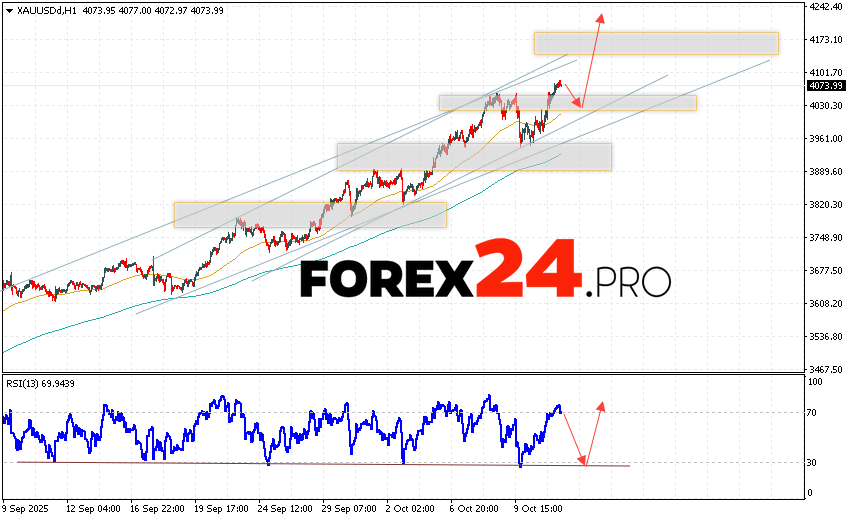 GOLD Forecast and XAU/USD Analysis for October 14, 2025 suggests an attempt to develop a bearish price correction and a test of the support area near 4035. Subsequently, a continued rise in base metal prices with a target above 4235. A decline in the asset’s market price and a breakout of 3965 would cancel the upward price scenario for gold. This would indicate a continued decline in gold prices with a potential target below 3825.
