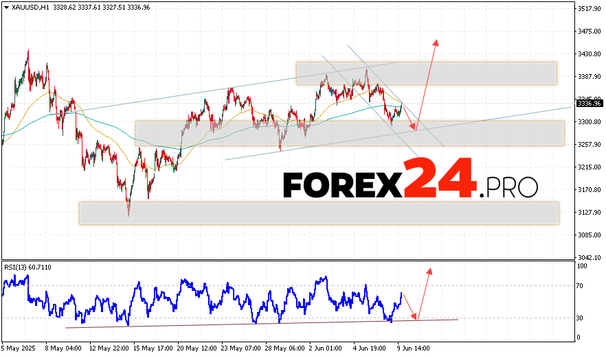 GOLD Forecast and XAUUSD Analysis for June 10, 2025suggests an attempt to develop a bearish price correction and test the support area near the 3295 level. Further, the growth of non-ferrous metal quotes will continue with a target above the 3465 level. A fall in the asset’s value on the markets and a breakout of the 3245 level will cancel the option of growth in gold prices. This will indicate a continuation of the decline in the price of gold with a potential target below the 3195 mark.
