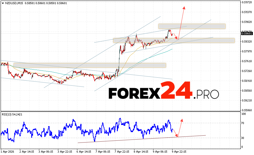NZD/USD Forecast and Analysis for April 10, 2026 suggests an attempt to test the support area near 0.5835. From there, we should expect continued price growth above 0.5975. A rebound from the support line on the relative strength indicator (RSI) would be an additional signal in favor of an uptrend. A price decline and a breakout of 0.5795 would cancel out the NZD/USD pair’s upward trend. In this case, we should expect continued decline, with a potential target below 0.5645.