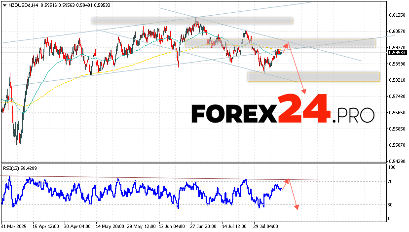 NZD/USD Forecast and Analysis for August 12, 2025 suggests an attempt to test the resistance area near the level of 0.5995. From where we should expect a continuation of the fall in quotes to the area below the level of 0.5745. An additional signal in favor of the decline will be a rebound from the resistance line on the relative strength indicator. The cancellation of the fall option for the NZD/USD pair will be a strong price increase and a breakout of the level of 0.6025. In this case, we should expect a continuation of the rise of the pair with a potential target above the level of 0.6255.