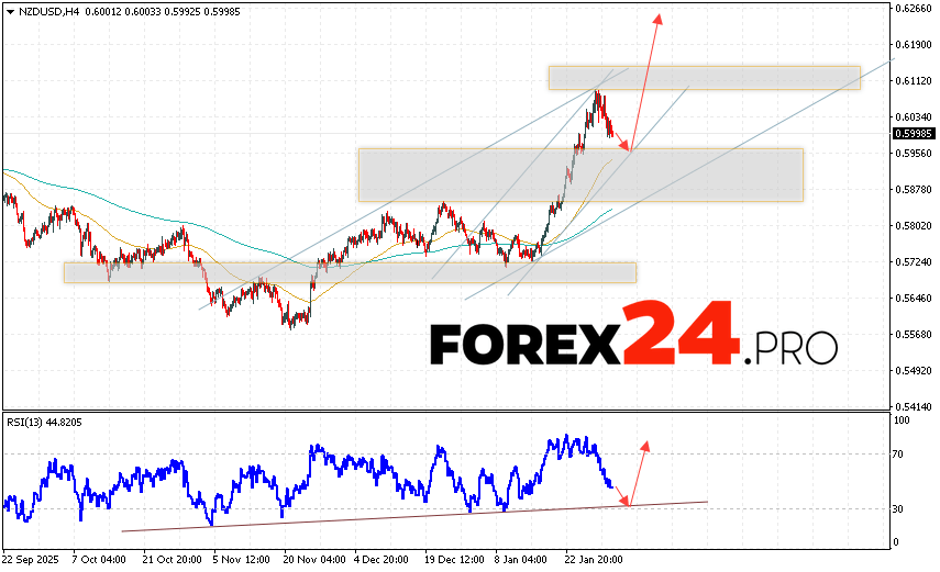 NZD/USD Forecast and Analysis for February 3, 2026 suggests an attempt to test the support area near 0.5965. From there, we should expect continued price growth above 0.6265. A rebound from the support line on the relative strength indicator (RSI) would be an additional signal in favor of an uptrend. A price decline and a breakout of 0.5925 would cancel out the NZD/USD’s upward trend. In this case, we should expect continued decline with a potential target below 0.5785.