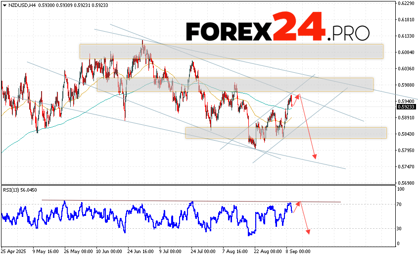 NZD/USD Forecast and Analysis for September 10, 2025 suggests an attempt to test the resistance area near the level of 0.5915. From where we should expect a continuation of the fall in quotes to the area below the level of 0.5765. An additional signal in favor of the decline will be a rebound from the resistance line on the relative strength indicator. The cancellation of the fall option for the NZD/USD pair will be a strong price increase and a breakout of the level of 0.6025. In this case, we should expect a continuation of the rise of the pair with a potential target above the level of 0.6205.