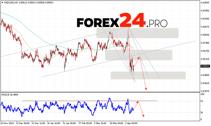 NZDUSD Forecast and Analysis for April 10, 2025 suggests an attempt to test the resistance area near the 0.5625 level. Where should we expect the quotes to continue falling to the area below the level of 0.5355. An additional signal in favor of a decline will be a test of the resistance line on the relative strength indicator. The cancellation of the NZD/USD pair decline option will be a strong price increase and a breakout of the level of 0.5675. In this case, we should expect the pair to continue rising with a potential target above the level of 0.5885.