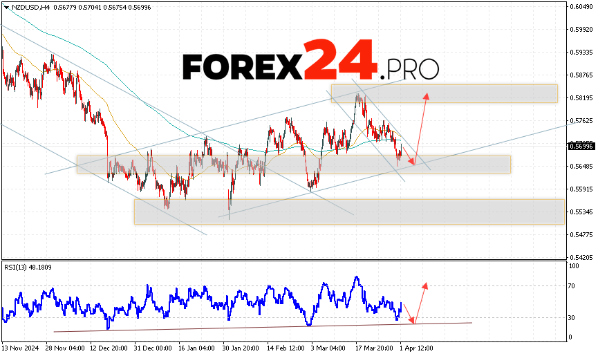 NZDUSD Forecast and Analysis for April 2, 2025 suggests an attempt to test the support area near the 0.5645 level. From where we should expect continued growth of quotes to the area above the 0.5825 level. An additional signal in favor of the rise will be a test of the support line on the relative strength indicator. The NZD/USD growth scenario will be cancelled if the price falls and the level of 0.5625 is broken. In this case, we should expect the pair to continue to decline with a potential target below the level of 0.5475.