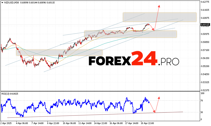 NZDUSD Forecast and Analysis for April 22, 2025 suggests an attempt to test the support area near the 0.5925 level. From where we should expect continued growth of quotes to the area above the 0.6205 level. An additional signal in favor of the rise will be a test of the support line on the relative strength indicator. The NZD/USD pair growth option will be cancelled if the price falls and the level of 0.5865 is broken. In this case, we should expect the pair to continue to decline with a potential target below the level of 0.5645.