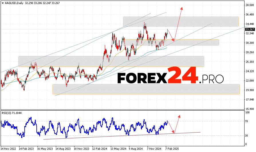 Silver Weekly Forecast February 17 — 21, 2025 suggests an attempt to test the support level near the 30.35 area. Then, the continuation of the growth in Silver prices with a target above 36.75. A test of the trend line on the relative strength indicator will be in favor of the growth. The XAG/USD growth option will be cancelled if it falls and breaks through the 28.35 level. This will indicate a continuation of the decline in quotes to the area below 26.95.