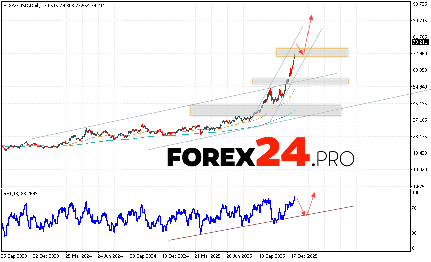 Silver Weekly Forecast XAG/USD December 29, 2025 — January 2, 2026 suggests an attempt to test the support level near 72.85. Then, silver prices will continue to rise with a target above 90.85. A test of the trend line on the relative strength indicator (RSI) would support an upside move. A decline and a break of 65.55 would invalidate the XAG/USD rally. This would indicate a continued decline below 55.95.