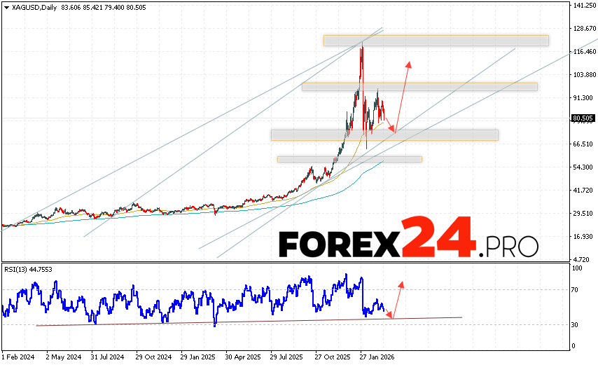 Silver Weekly Forecast XAG/USD March 16 – 20, 2026 suggests an attempt to test the support level near the 80.50 area. Then, silver prices will continue to rise with a target above 105.65. A test of the trendline on the relative strength indicator (RSI) will support the upside. A decline and a break of 65.05 will cancel out the XAG/USD rally. This will indicate a continued decline below 55.05.