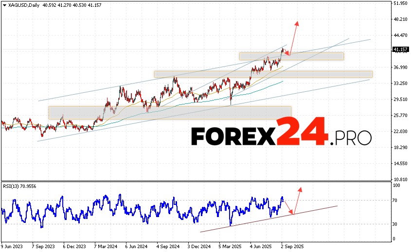 Silver Weekly Forecast XAG/USD September 8 – 12, 2025 suggests an attempt to test the support level near the 39.65 area. Then, the continuation of the growth of Silver prices with a target above the 48.35 level. A test of the trend line on the relative strength indicator will act in favor of the rise. The cancellation of the XAG/USD growth scenario will be a fall and a breakout of the 36.05 level. This will indicate a continuation of the decline in quotes to the area below the 33.65 level.