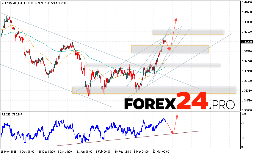 Canadian Dollar Forecast USD/CAD for April 1, 2026 suggests an attempt to test the support area near 1.3865. Subsequently, continued growth above 1.4115. An additional signal in favor of a rise in the Canadian Dollar on Forex will be a test of the support line on the relative strength indicator. The USD/CAD price rally would be cancelled if it falls below 1.3755. This would indicate continued declines in the asset’s value, with a potential target below 1.3585.