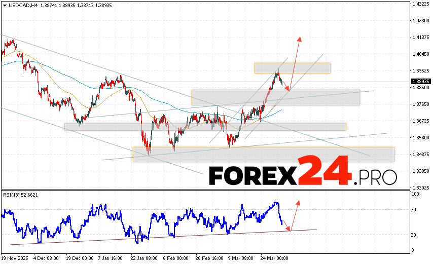 Canadian Dollar Forecast USD/CAD for April 2, 2026 suggests an attempt to test the support area near 1.3835. Subsequently, continued growth to above 1.4135. An additional signal in favor of a rise in the Canadian Dollar on Forex will be a test of the support line on the relative strength indicator. The USD/CAD price move would be cancelled if the pair falls below 1.3755. This would indicate continued declines in the asset’s value, with a potential target below 1.3575.