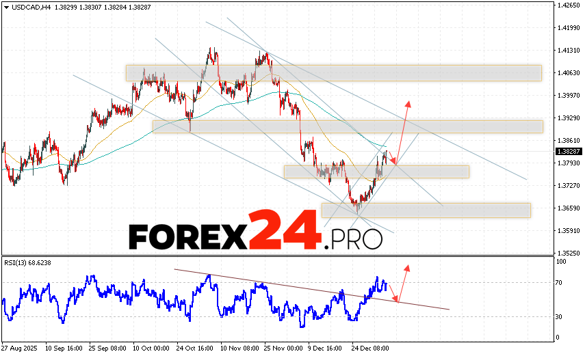Canadian Dollar Forecast USD/CAD for January 8, 2026 suggests an attempt to test the support area near 1.3785. Further growth is expected to continue above 1.3985. A test of the support line on the relative strength indicator (RSI) will be an additional signal in favor of the Canadian dollar’s growth on Forex. A decline and a break of 1.3705 will cancel out the upward trend in USD/CAD quotes. This will indicate continued decline in the asset’s price, with a potential target below 1.3545.