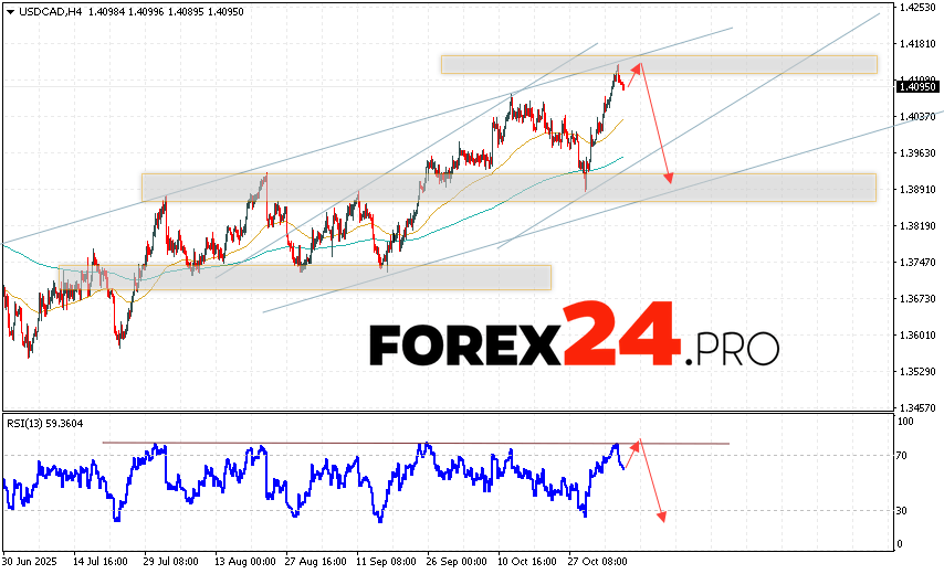 Canadian Dollar Forecast USD/CAD for November 7, 2025 suggests an attempt to test the resistance area near 1.4145. Subsequently, a continued decline below 1.3895. An additional signal in favor of a decline in the Canadian Dollar on Forex would be a test of the resistance line on the relative strength indicator. A strong rally and a breakout of 1.4225 would cancel out the USD/CAD price decline. This would indicate continued price growth with a potential target above 1.4385.