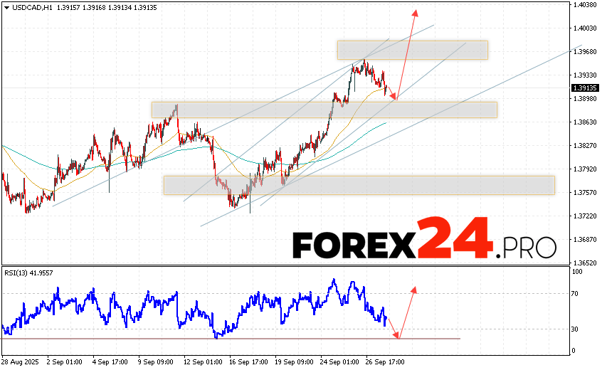 Canadian Dollar Forecast USD/CAD for October 1, 2025 suggests an attempt to test the support area near 1.3875. Subsequently, continued growth is expected above 1.4045. A test of the support line on the relative strength indicator (RSI) will be an additional signal in favor of the Canadian dollar’s rise on Forex. A decline and a break of 1.3835 would cancel out the upside potential for USD/CAD. This would indicate continued declines in the asset’s value, with a potential target below 1.3575.