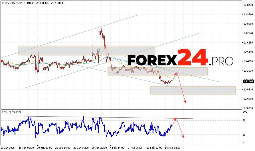 Canadian Dollar Forecast USDCAD for February 18, 2025 suggests an attempt to test the resistance area near the 1.4275 level. Further, a continuation of the fall to the area below the 1.3945 level. An additional signal in favor of the decline of the Canadian Dollar on Forex will be a test of the trend line on the relative strength indicator. The cancellation of the USD/CAD fall scenario will be a strong growth and a breakout of the 1.4355 level. This will indicate a continued rise in the asset’s value with a potential target above the level of 1.4575.