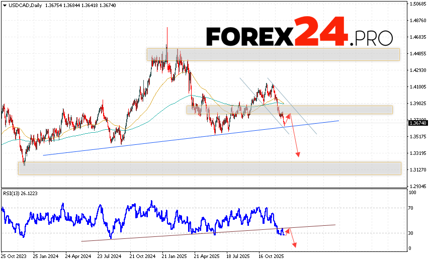 USD/CAD Weekly Forecast December 29, 2025 — January 2, 2026 suggests an attempt to develop a bullish correction and test the resistance area near 1.3645. Further decline is then expected with a target below 1.3055. An additional signal in favor of a decline would be a test of the resistance line on the relative strength indicator. The downside potential would be cancelled by a strong rally and a breakout of 1.3505. This will indicate a breakout of a key resistance level and continued growth with a target above 1.3225.