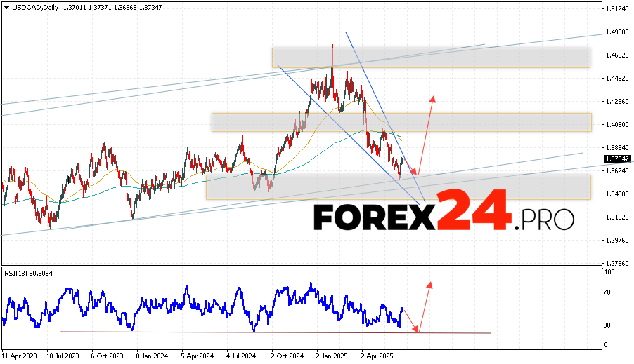 USD/CAD Weekly Forecast June 23 — 27, 2025 suggests an attempt to test the support area near the 1.3635 level. Further, growth will continue to the area above the 1.4265 level. An additional signal in favor of the rise of the Canadian dollar on Forex will be a test of the support line on the relative strength indicator. A fall and breakout of the 1.3565 level will cancel the USD/CAD growth scenario. This will indicate a continuation of the asset’s decline with a potential target below the 1.3285 level.