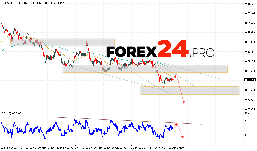 USD/CHF Forecast Dollar Franc for June 17, 2025 suggests an attempt to develop an uptrend and test the resistance area near the 0.8155 level. Further, the USD/CHF currency pair will continue to fall with a target below the 0.7965 level. An additional signal in favor of a decline in the dollar-franc pair will be a rebound from the trend line on the relative strength indicator. A strong rise and a breakout of the 0.8195 area will cancel the decline scenario. This will indicate a breakout of the resistance level and a continuation of the pair’s rise with a potential target above the 0.8475 level.