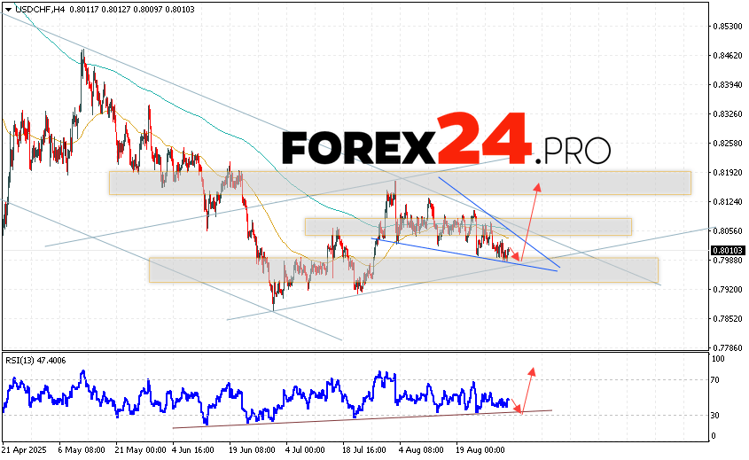 USD/CHF Forecast Dollar Franc for September 2, 2025 suggests an attempt to develop a bearish correction and test the support area near the level of 0.7965. Further, the continuation of the growth of the USD/CHF currency pair with a target above the level of 0.8145. An additional signal in favor of the rise of the Dollar Franc pair will be a rebound from the trend line on the relative strength indicator. The cancellation of the growth option will be a fall and a breakout of the 0.7945 area. This will indicate a breakout of the support level and a continuation of the fall of the pair with a potential target below the level of 0.7675.