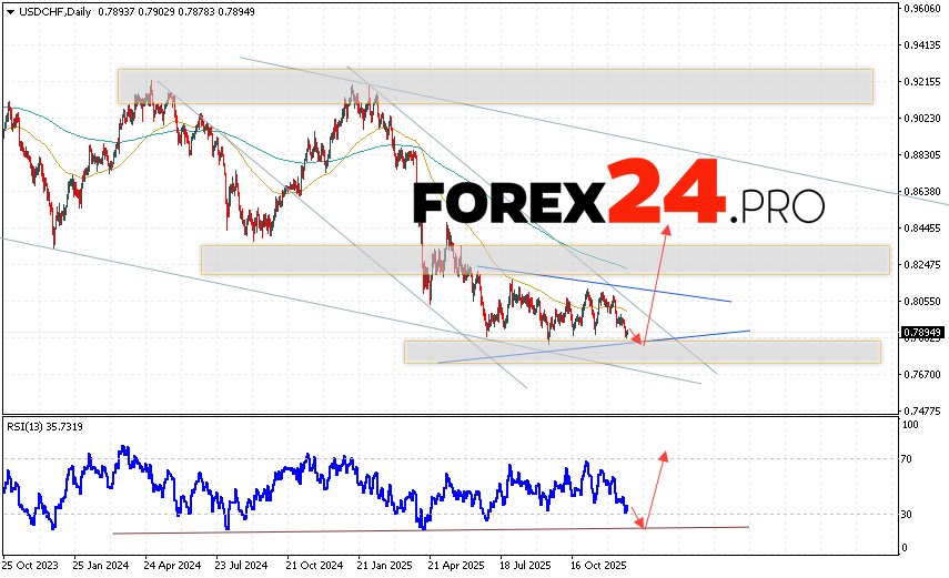 USD/CHF Weekly Forecast December 29, 2025 — January 2, 2026 suggests an attempt to develop a bearish correction and a test of the support level near the 0.7865 area. The USD/CHF pair is then expected to continue rising above 0.8445. A test of the trend line on the relative strength indicator (RSI) would support the upside. A breakout of the support area and a close below 0.7675 would invalidate the USD/CHF upside. This would indicate continued decline with a potential target below 0.7345.