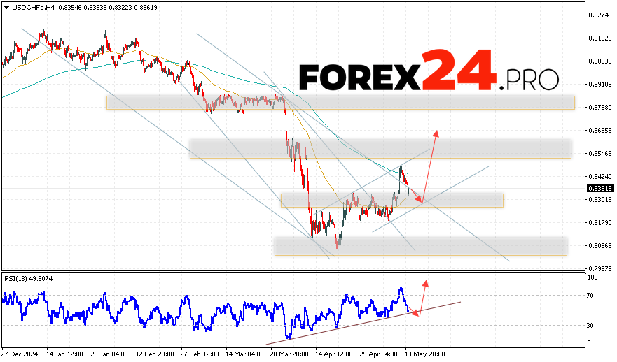 USDCHF Forecast Dollar Franc for May 15, 2025 suggests an attempt to develop a bearish correction and test the support area near the level of 0.8315. Further, the continuation of the USD/CHF currency pair growth with a target above the level of 0.8665. An additional signal in favor of the rise of the pair USD/CHF will be a rebound from the trend line on the relative strength indicator. The growth option will be canceled by a fall and breakdown of the 0.8175 area. This will indicate the breakdown of the support level and the continuation of the pair’s decline with a potential target below 0.8045.