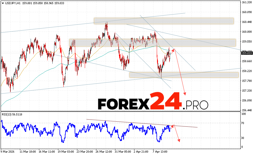USD/JPY Forecast Japanese Yen for April 10, 2026 suggests an attempt to develop a bullish correction with a test of the resistance zone near 159.25. Then, the bearish momentum will continue to develop below 157.15. A test of the trendline on the relative strength indicator (RSI) would support a downside move. A strong rally and a breakout of the 160.05 area would invalidate this downside scenario. This would signal a breakout of the resistance level and continued growth, with a potential target above 161.65.
